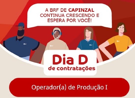No próximo dia 26 de agosto, segunda-feira, a BRF de Capinzal, estará presente em Machadinho para realizar um dia de contratações.