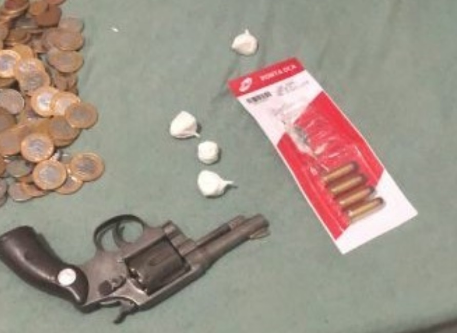 No momento da prisão, num apartamento, estava de posse de drogas, arma de fogo e R$ 3.000,00 em dinheiro. Também foram apreendidos telefones celulares.