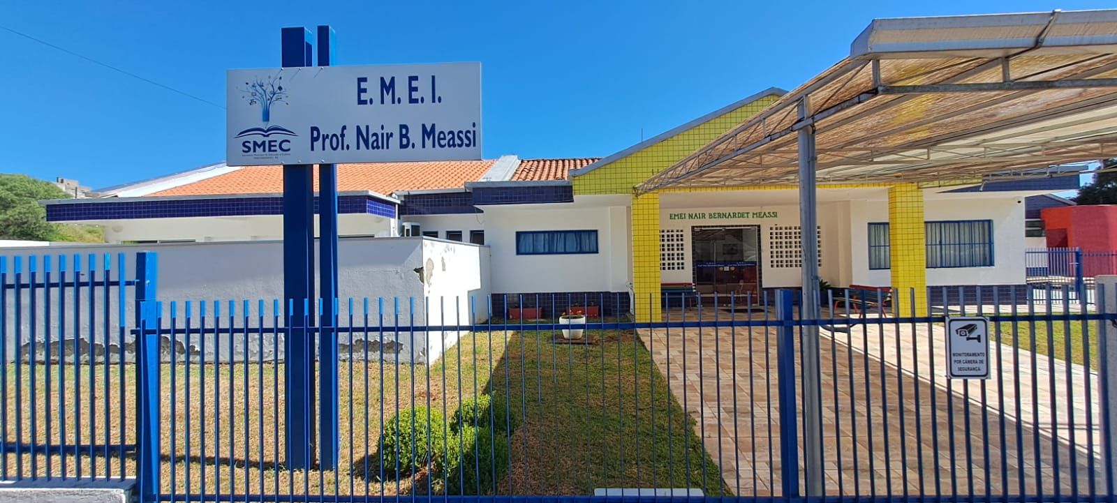 Na Escola PROFESSORA NAIR BERNARDET MEASSI (creche): Nova cobertura metálica no pátio interno, instalação de forro no refeitório e salão principal, substituição em policarbonato na entrada principal, instalação de capa de muro em todo o entorno, instalação de tela milimétrica nas janelas da cozinha do refeitório. Valor: R$ 112.000,00. Execução: Empresa DLX.