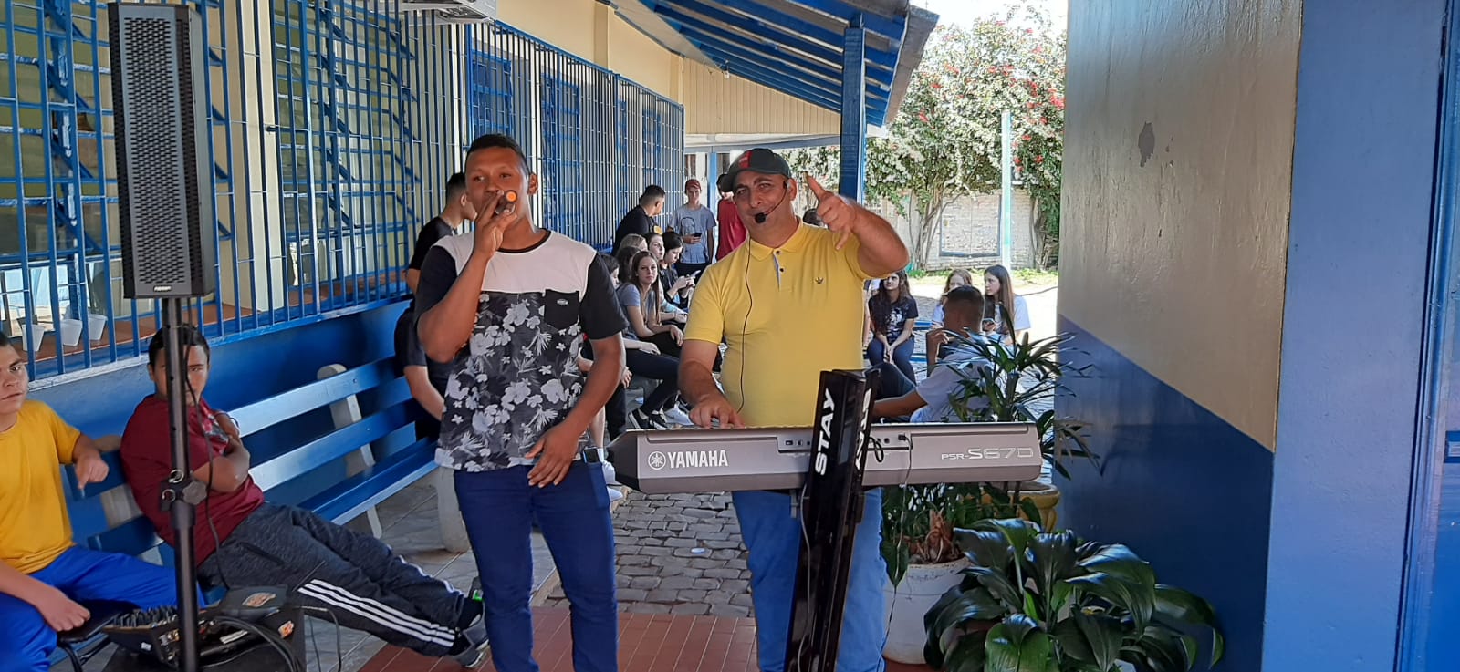 A Escola Estadual Castro Alves de Machadinho completou 60 anos! O dia do aniversário desta prestimosa instituição de ensino, foi 27 de abril. No mesmo dia, os professores, funcionários e alunos – dos três turnos, estiveram reunidos no período da manhã e realizaram uma bela e emocionante comemoração festiva! Quem animou a festa, foi a dupla Névio e Orli!
