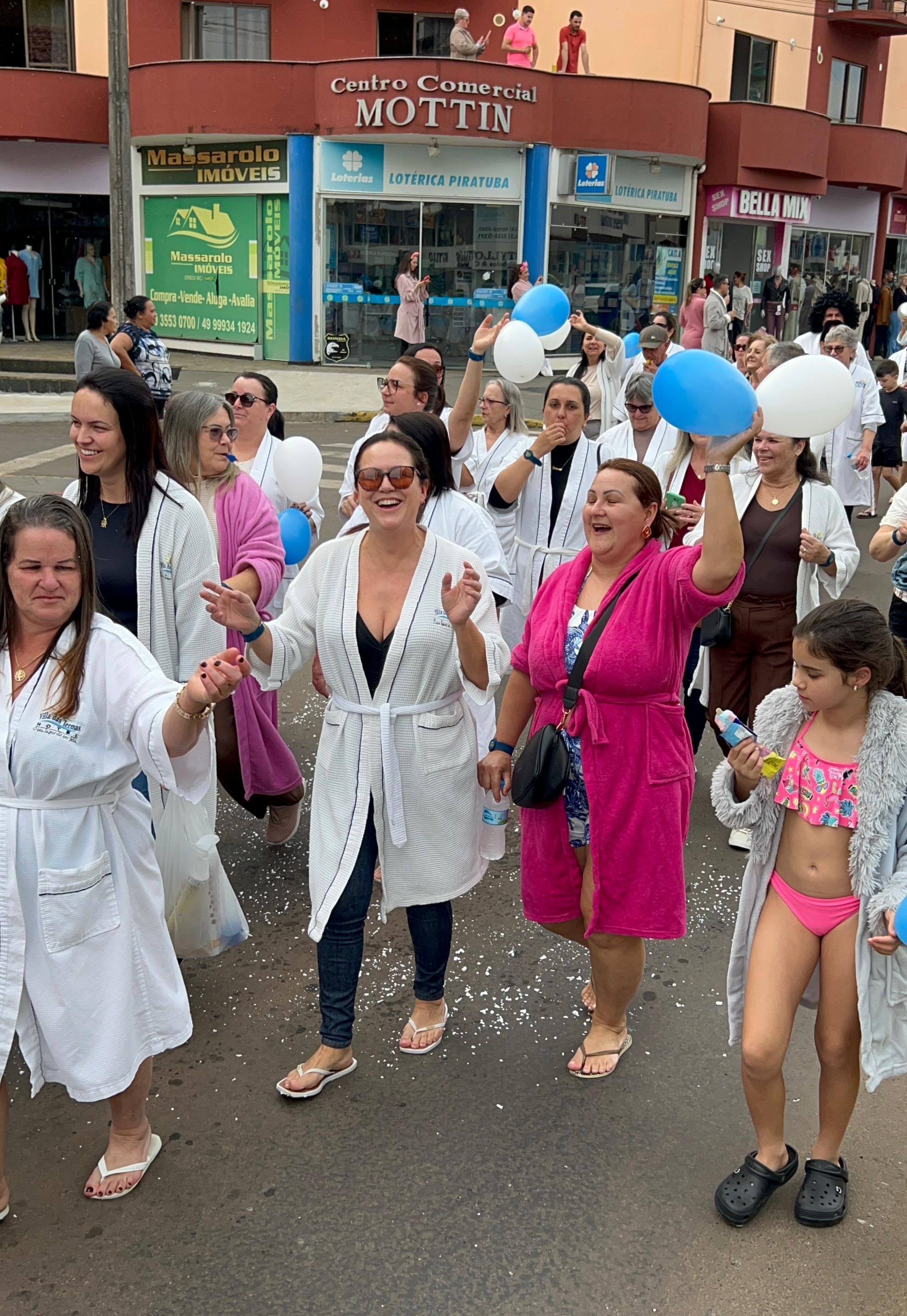 Neste sábado (03), Piratuba foi palco de mais uma edição da já tradicional Festa do Roupão, que chegou à sua 6ª edição em grande estilo. O evento, promovido pelas Termas de Piratuba, em parceria com a Prefeitura Municipal, por meio da Secretaria de Turismo e da Fundação de Cultura e Eventos, com a colaboração da rede hoteleira, CDL e a equipe dos Recreacionistas, reuniu moradores e turistas em uma celebração cheia de charme, irreverência e alegria.
