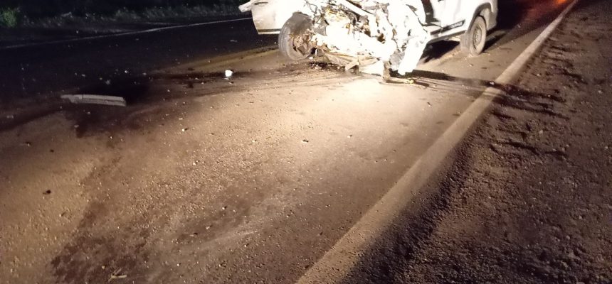 Um grave acidente de trânsito na noite desta segunda-feira, 20 de abril, deixou um rastro de tragédia na BR-470. A colisão ocorreu no acesso à Coopercampos, trecho popularmente conhecido como “Mata Pau”, e envolveu uma Fiat Strada e um VW Golf de passeio.