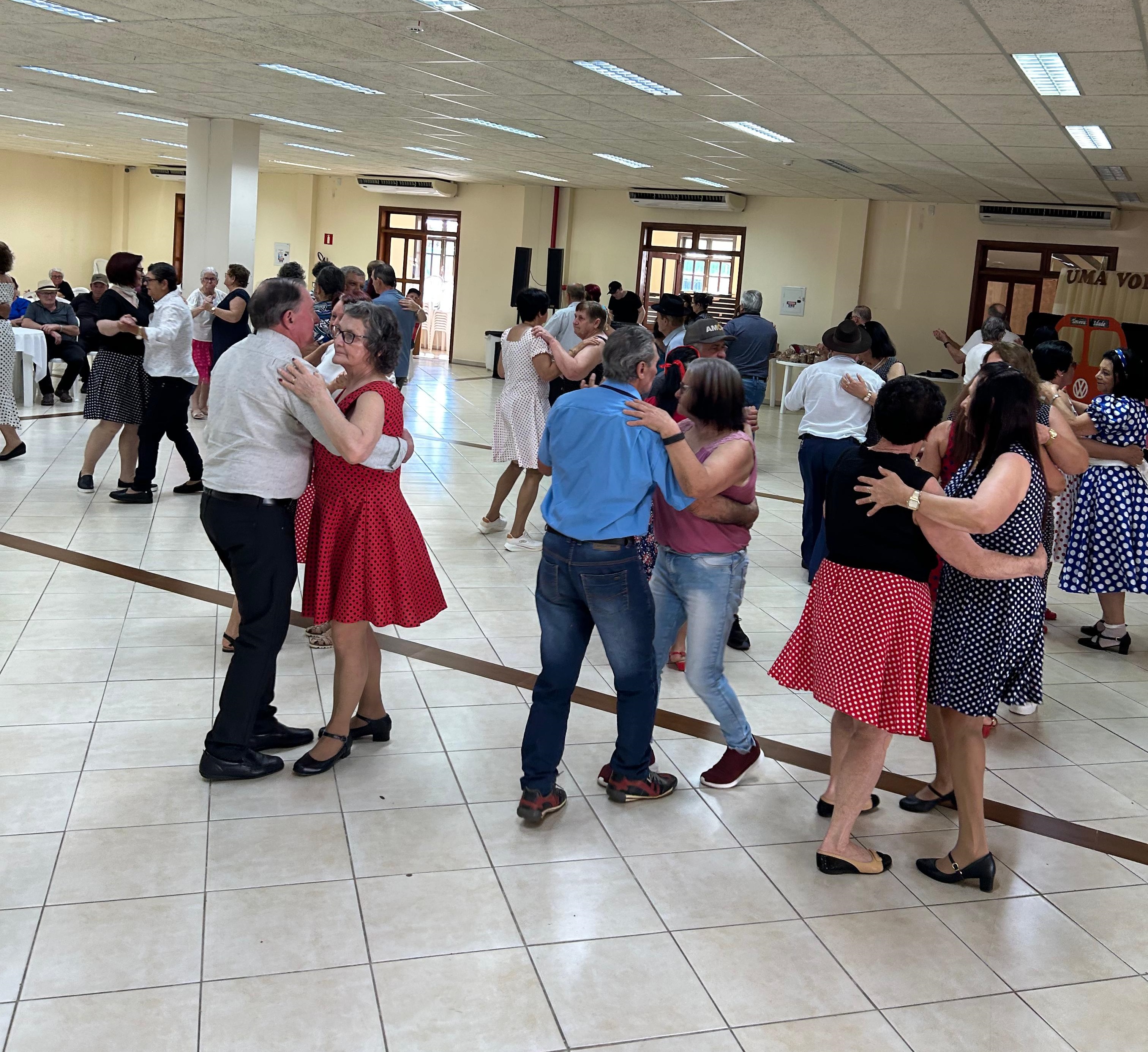 Desta vez, o encontro foi coordenado pelo grupo Sempre Unidos de Lageado Mariano e teve como tema “Uma volta aos anos 60”. O salão foi tomado por música, dança, diversão e muita celebração em uma tarde de integração e convivência.