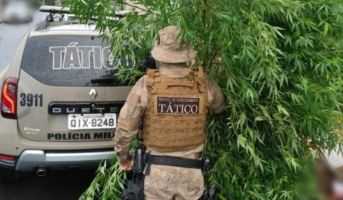 Herval d’Oeste: PM encontra pés de maconha cultivados em pátio de residência