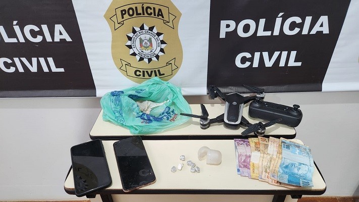 Foi localizado junto dele uma porção de drogas, drone, celulares, dinheiro, produtos relacionados ao tráfico de drogas.