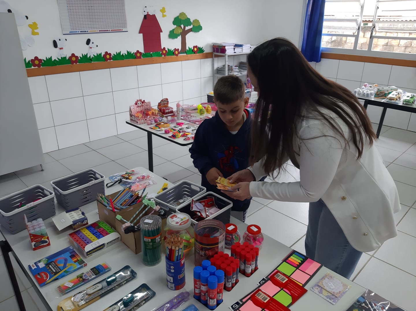 Durante a Feirinha os alunos puderam comprar brinquedos, livros e materiais escolares, utilizando as Samuedas e colocando em prática os conhecimentos financeiros adquiridos. Os ítens para a lojinha foram adquiridos através do projeto social que foi viabilizado através de uma parceria entre a escola, a Secretaria Municipal de Educação, o Sicredi e o Consórcio Machadinho.