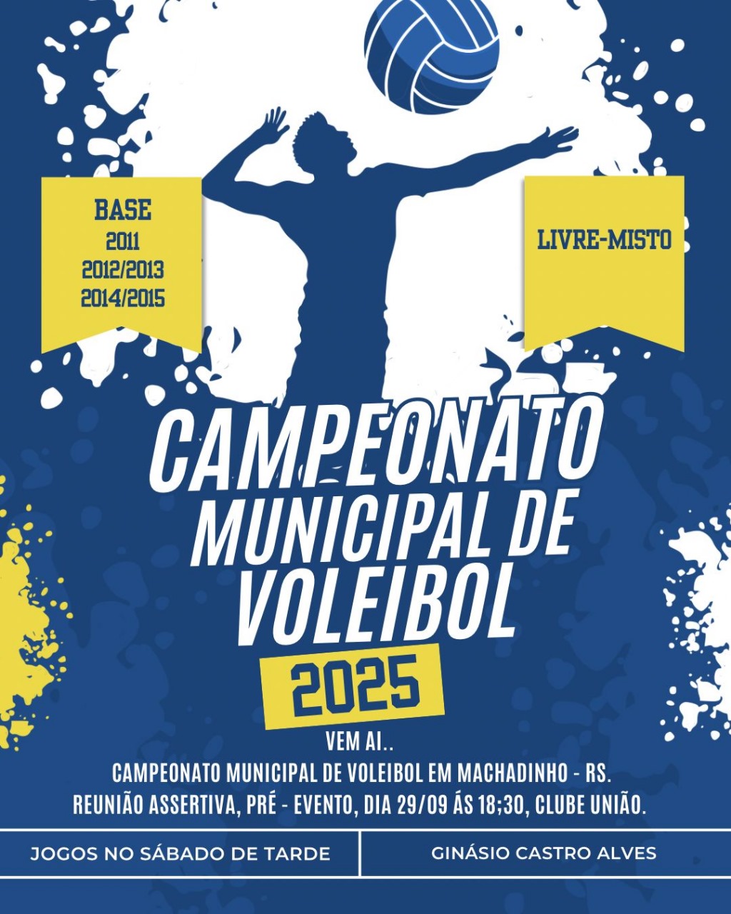 Neste sábado, dia 4 de outubro de 2025, começa a 1ª Copa Municipal de Voleibol de Machadinho com a primeira rodada da competição. Dez equipes mistas, divididas em duas categorias, disputarão o título e a chance de entrar para a história como campeãs da edição inaugural.