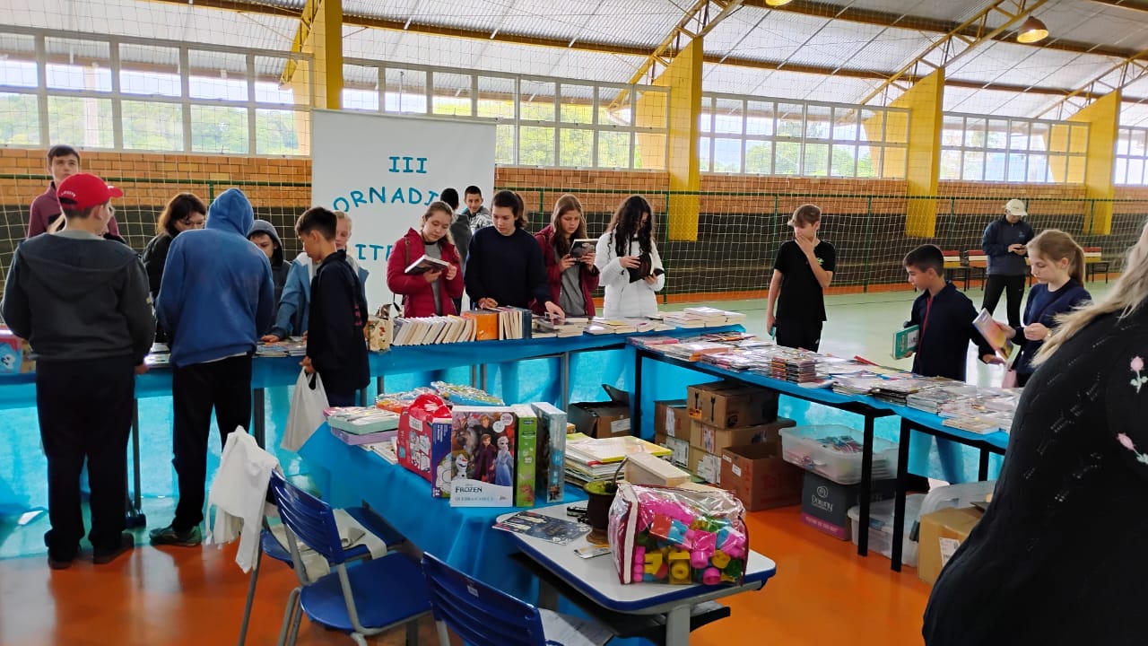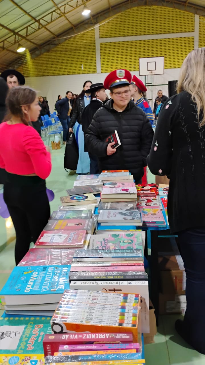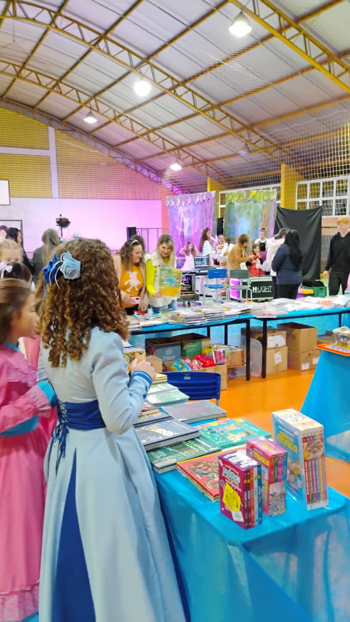 Paralelamente, na quadra da Escola Municipal Murian Piovesan de Lima, acontece a tradicional Feira de Livros, aberta à comunidade machadinhense. Além da ampla oferta de livros a preços acessíveis – a partir de cinco reais até os lançamentos de diversos gêneros –, a feira conta com uma programação cultural especial. Na primeira noite, os visitantes puderam assistir à apresentação do clássico teatral Alice no País das Maravilhas, encenado pelo grupo avançado de alunos das oficinas de teatro e dança.