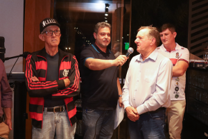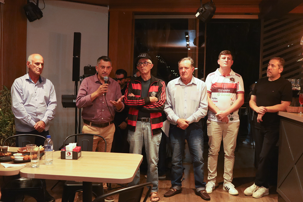 Um dos momentos mais emocionantes da noite foi a fala dos fundadores Raul e Wilson Tessaro, que relembraram a trajetória do clube desde sua origem, destacando a construção do campo em 1968 e apresentando documentos históricos resgatados em cartório no município de Marcelino Ramos.