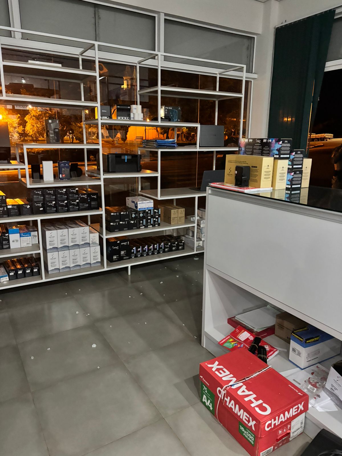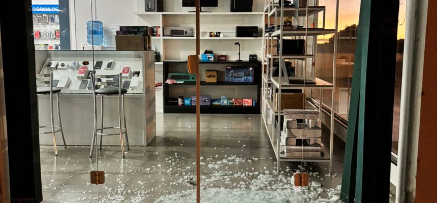 Na madrugada desta quarta-feira, dia 15 de abril de 2026, por volta das 4h45 da manhã, a loja TMA Informática, localizada em uma das esquinas da Praça da Bandeira (Praça da Biblioteca Municipal), foi alvo de arrombamento e furto em Machadinho.