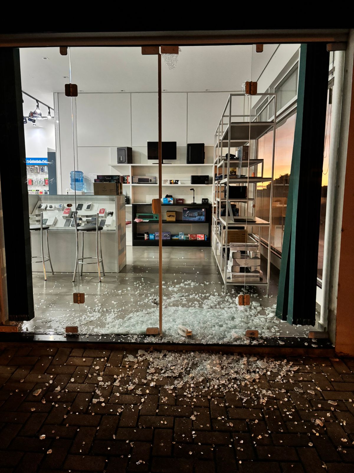 No interior da loja havia outros itens, porém, devido ao barulho causado pelo estouro da porta, o suspeito acabou fugindo logo após pegar o valor.