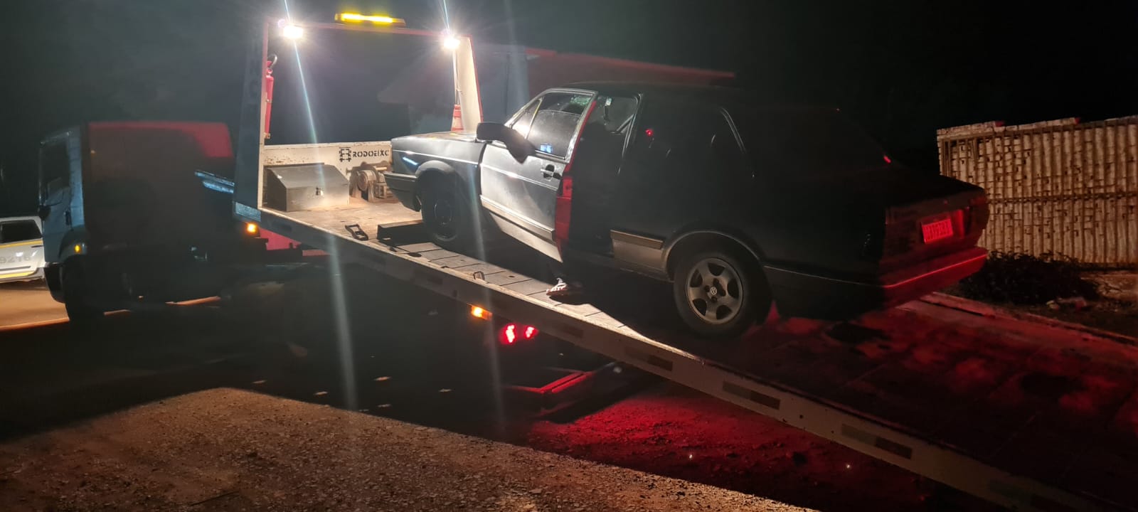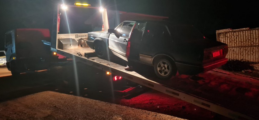 O acompanhamento se fez por cerca de 40km, até que foi possível a abordagem do veículo, em frente ao Cemitério Municipal de Machadinho. O condutor foi identificado, onde foi constatado que haviam mais 3 pessoas no veículo. Foram tomadas as providências, sendo que os ocupantes do veículo, foram liberados aos responsáveis. O condutor do veículo, foi conduzido ao PADU, para realizar exame de corpo de delito. Foi confeccionada a documentação cabível e o veículo, foi recolhido ao depósito do guincho, pelo crime previsto no Art.311 do CTB.