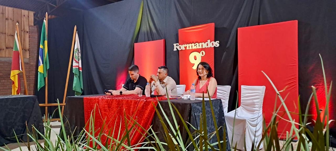 Colaram grau os alunos das turmas do 9º Ano A e do 9º Ano B. A turma do 9º Ano A teve como professora regente Nediane Betiato Pieri, paraninfa Patrícia Giequelin Centelegue e amiga da turma a professora Emanueli Maria Pelizzari Menin. Já o 9º Ano B contou com a regência do professor João Alberto Zanandrea, tendo como paraninfo o diretor da escola, Alex Maurílio Winck, e como amiga da turma a professora Alais Mezzalira Gusso.