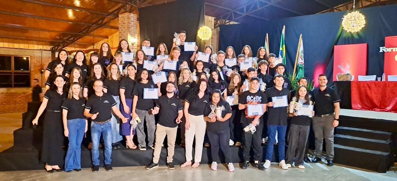 O evento foi encerrado com a execução do Hino de Machadinho, simbolizando não apenas o fim de um ciclo, mas também o início de novos desafios e oportunidades na vida acadêmica e pessoal dos jovens formandos.