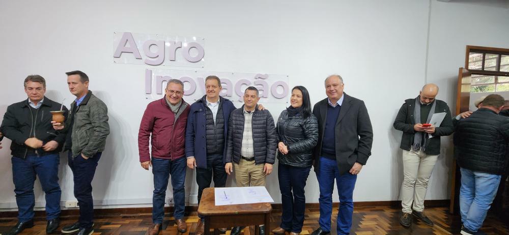 A assinatura do convênio contou com a presença do presidente da Câmara de Vereadores, Gerson Debiasi (PP), que destacou a importância do momento: “Quando se trata de agricultura, sempre estarei ao lado dos nossos produtores. Estamos aqui representando Machadinho nessa assinatura que é um passo significativo para fortalecer a nossa base econômica rural.”