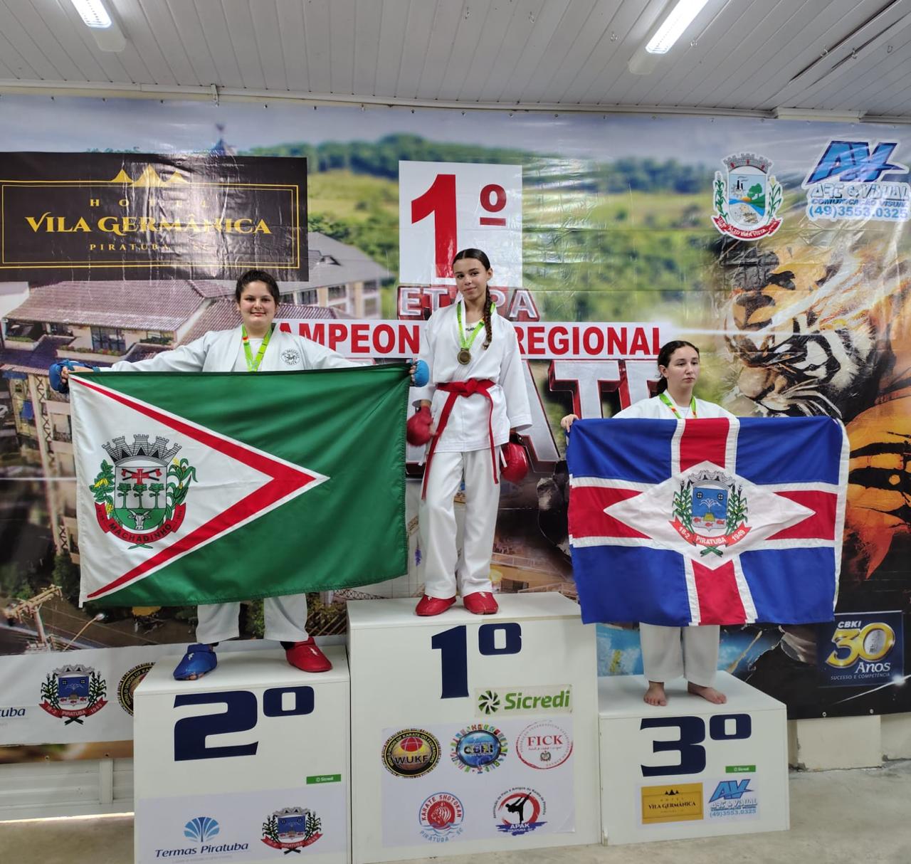 No último sábado, 1º de novembro, o município de Machadinho marcou presença no Campeonato Municipal de Karatê, realizado em Alto Bela Vista, Santa Catarina, com uma equipe composta por oito atletas que competiram nas modalidades Kata (forma) e Kumite (luta). A participação foi coroada de sucesso, com a conquista de seis medalhas — sendo duas de ouro, uma de prata e três de bronze.