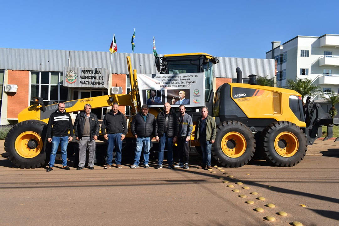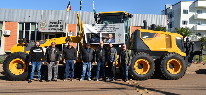 O parque de máquinas do município de Machadinho a partir de agora conta com mais um implemento que favorecerá a realização de obras. A motoniveladora (patrola) somada com os demais maquinários viabilizará melhores condições para a realização dos serviços nas estradas do município.