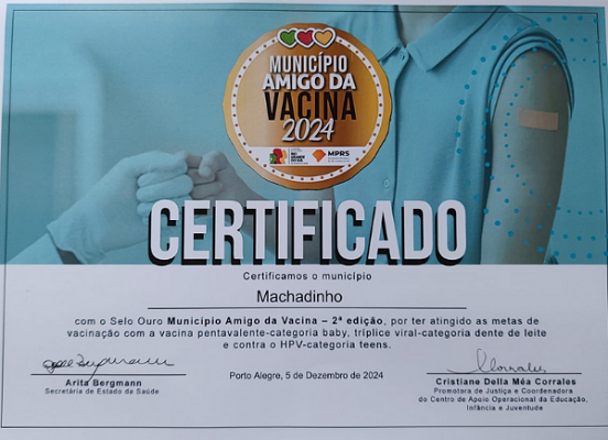 Machadinho é reconhecido com selo de ouro como município amigo da vacina