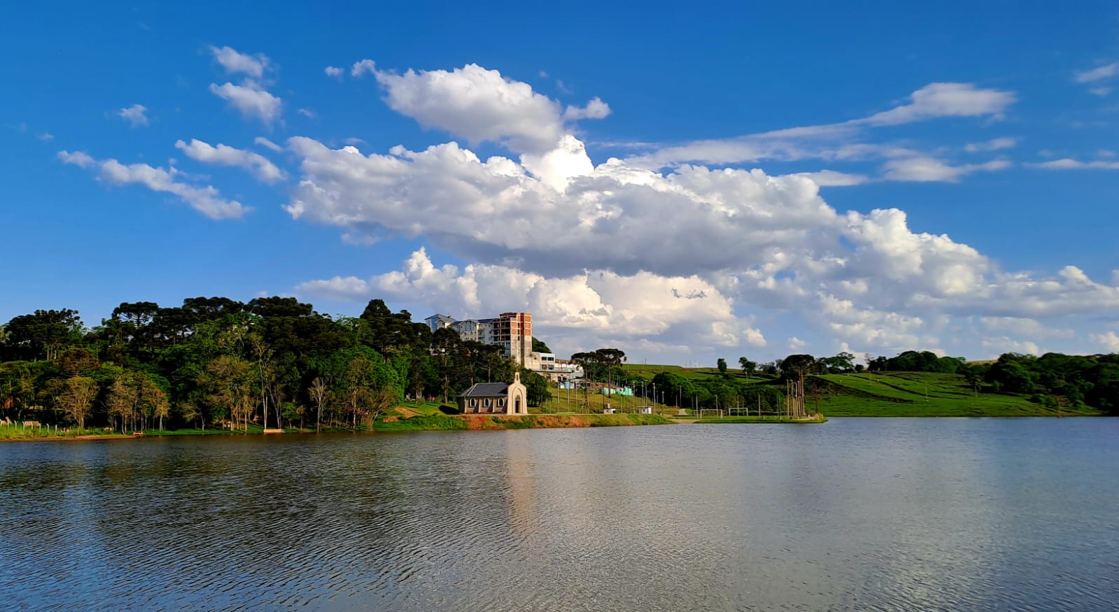 Em Machadinho, no Rio Grande do Sul, encontra-se um verdadeiro refúgio de beleza e lazer: o Complexo Termal de Machadinho. O Lago, com suas águas tranquilas, que refletem o céu e a vegetação ao redor, formam um cenário de tirar o fôlego, e a charmosa igrejinha ali posicionada confere um toque de tradição ao ambiente.