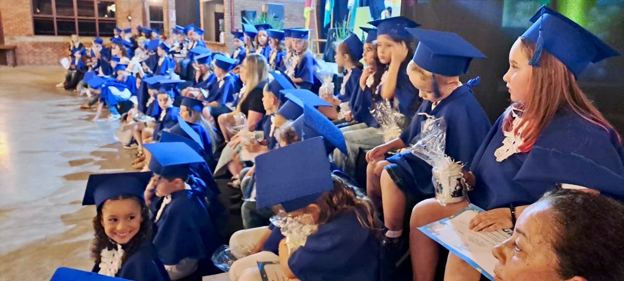 Ao todo, colaram grau 68 alunos da Escola Municipal de Ensino Fundamental Professora Anita Boneth Beltrame, integrantes das turmas de Pré B. Participaram da solenidade os estudantes da Turma A, orientados pela professora Oneide Fátima Gilioli Panho; da Turma B, sob a responsabilidade da professora Dhenyf Fernanda Bombarda; da Turma C, conduzida pela professora Taize Ignoato Ferreira e pela monitora Maiara Andreia Hoszczaruk; e da Turma D, acompanhada pela professora Karina Inocente e pela monitora Aléa da Conceição.