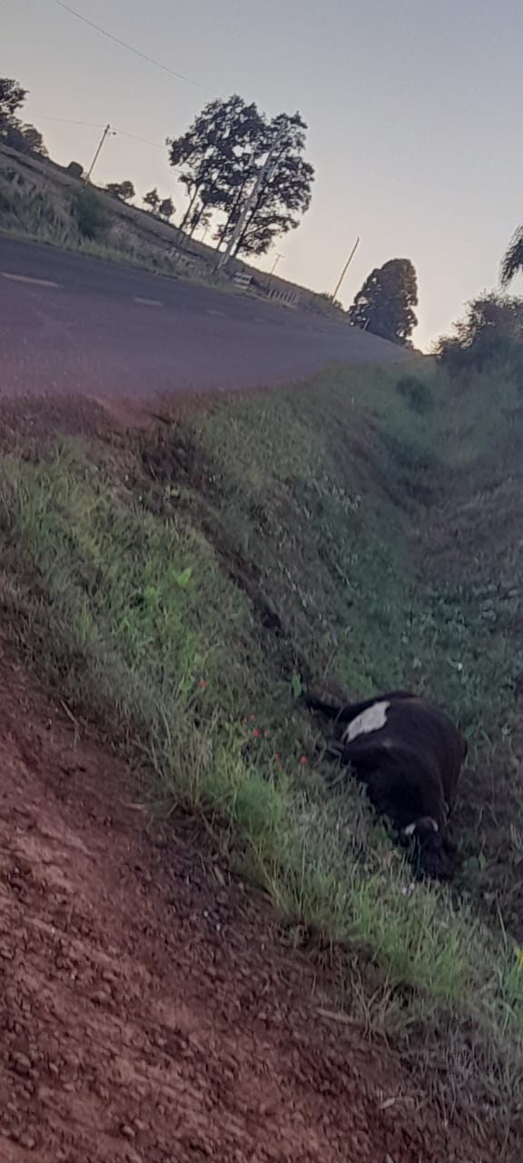Feito a varredura do local, foi constatado que a vítima havia colidido primeiramente com uma vaca que também se encontrava em óbito, uns 20 metros antes do veículo com a vítima.
