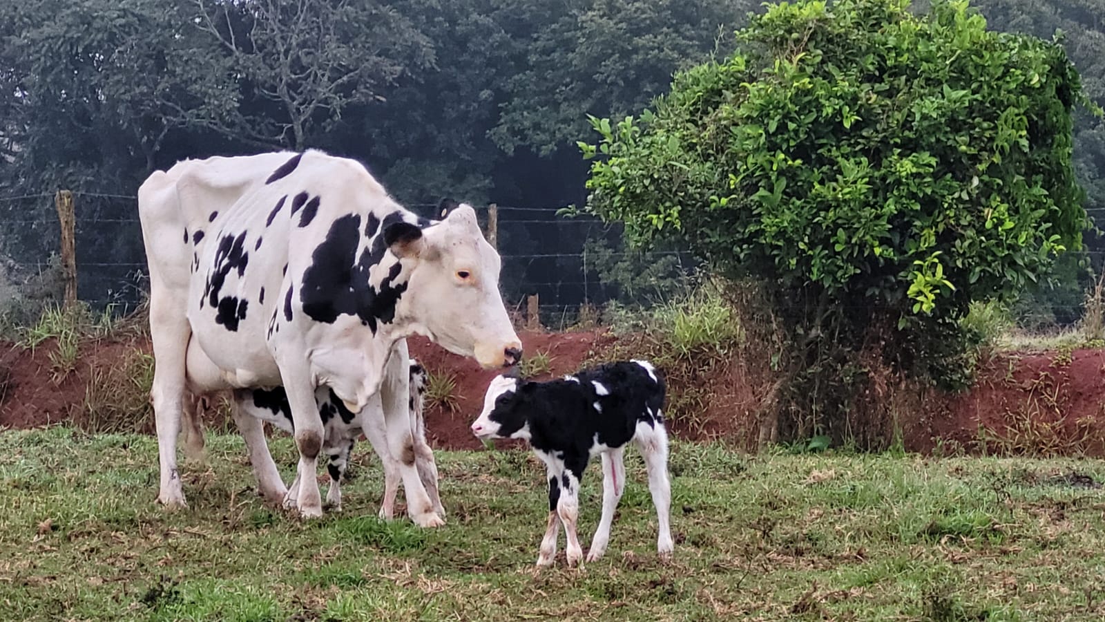 Segundo o Sr. Antônio Borella, esta não foi a primeira vez. Já houve parto gemelar na propriedade em outras três ocasiões, sempre com macho e fêmea ou, dois machos. “Desta vez, foi com duas fêmeas.”