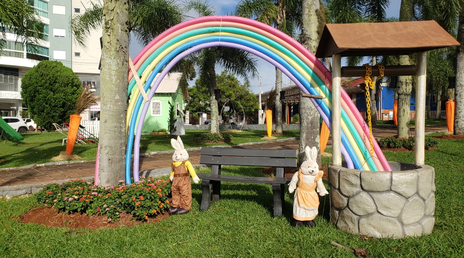 A magia da Páscoa, se faz presente através do empenho da equipe da Secretaria de Turismo, que, com esmero e dedicação, confecciona uma decoração digna de admiração a cada ano que passa.