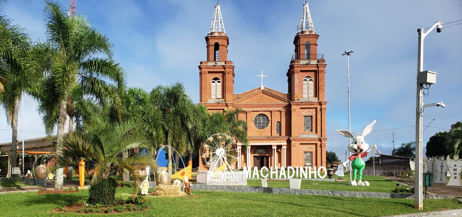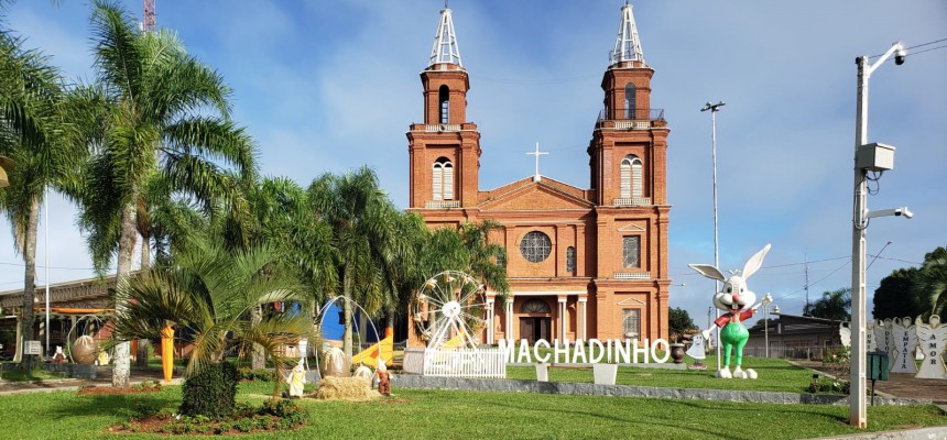 Em meio ao charmoso ambiente da Praça da Matriz, os habitantes de Machadinho e os que a visitam, são recebidos por uma paisagem encantadora, repleta de adornos pascalinos, que pintam de alegria e renovação o local.