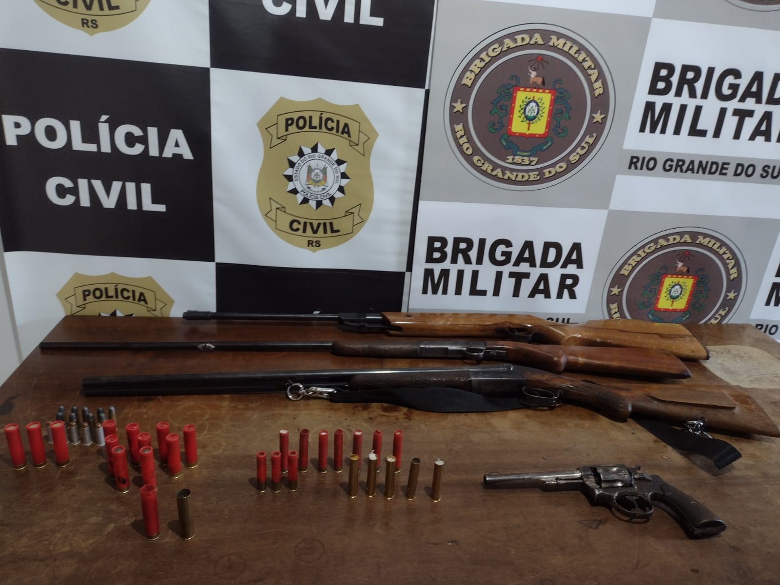 Os mandados de busca e apreensão eram em relação a armas. Foram dois casos de ameaça entre vizinhos. Em um dos casos, não foram encontradas armas e o homem ficou em liberdade. No outro caso, foram encontradas três espingardas e um revolver, os quais não possuíam registro. O homem foi conduzido preso para a delegacia, onde pagou fiança de R$ 3.000,00 (três mil reais) e irá responder em liberdade.
