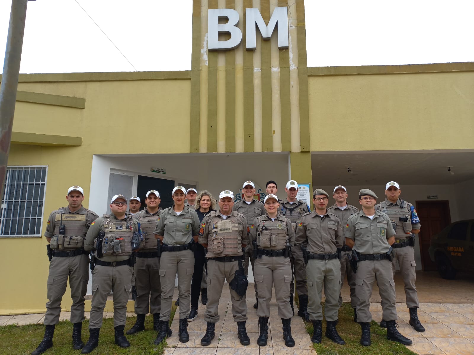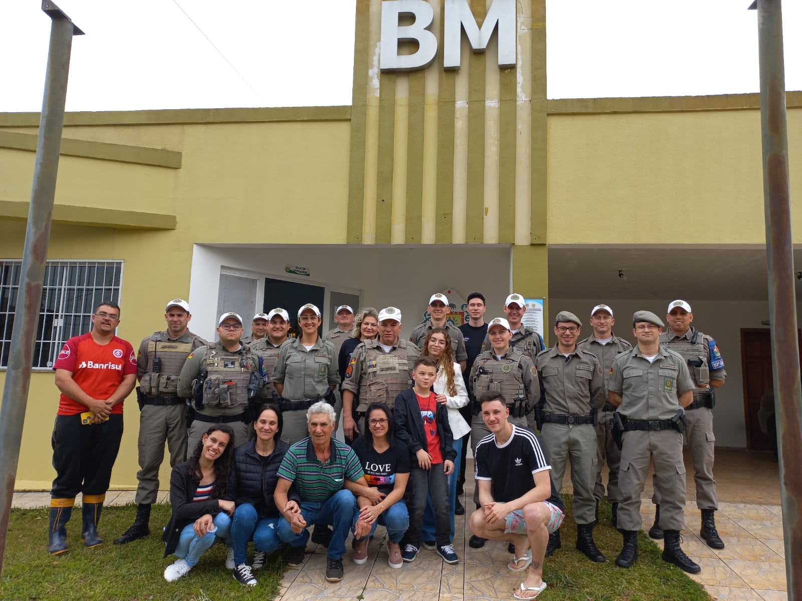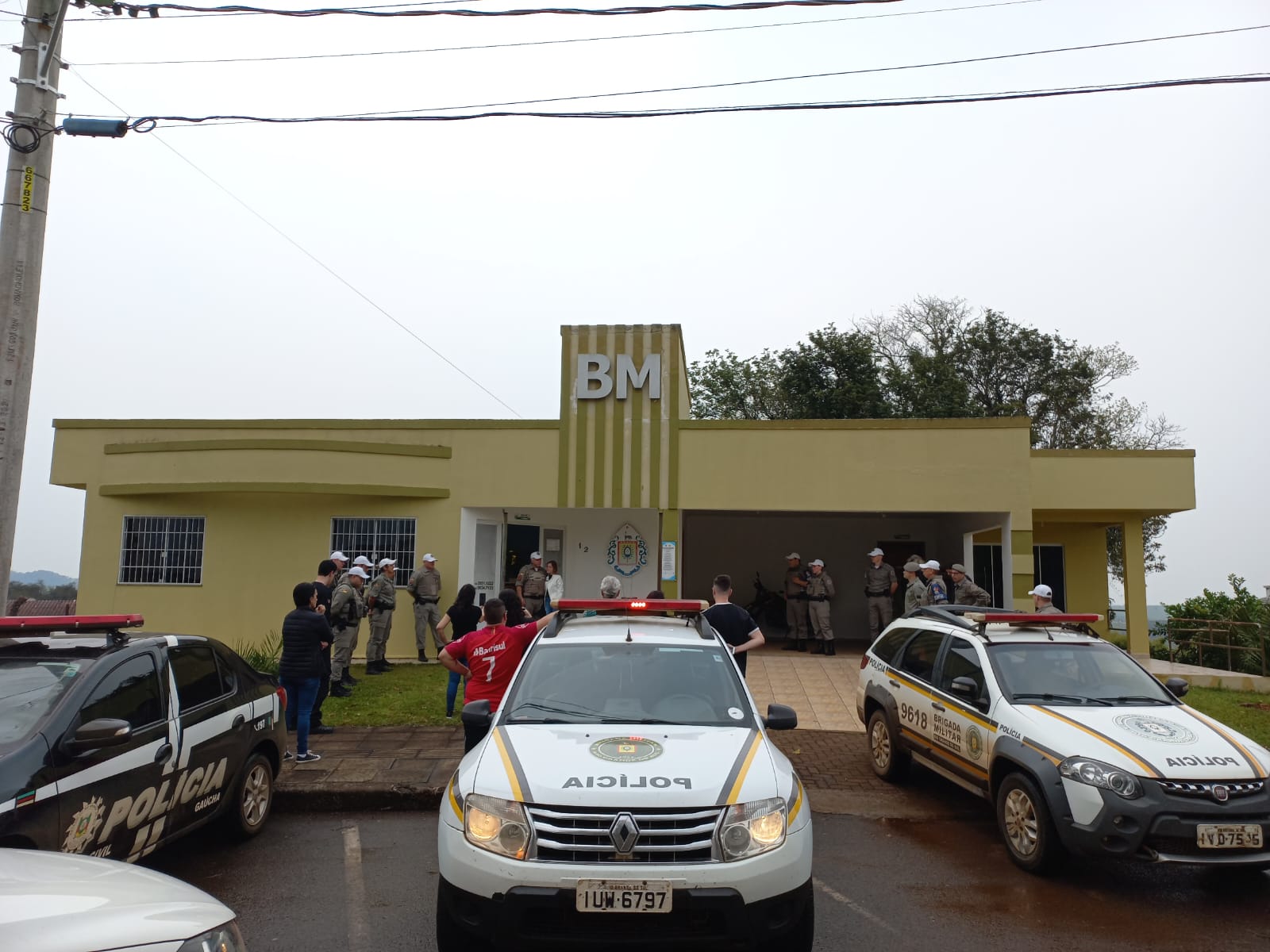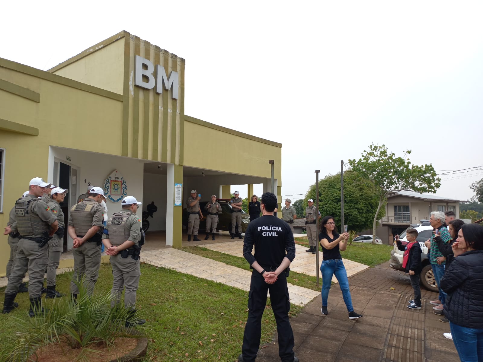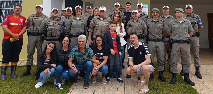 No final da manhã desta sexta-feira, 09 de setembro; o Sargento Pompeu, Comandante da Brigada Militar, nos municípios de Machadinho, Maximiliano de Almeida e Paim Filho, foi pego de surpresa em uma linda homenagem, feita pelos seus familiares e por seus colegas policiais, da Brigada Militar e da Polícia Civil.