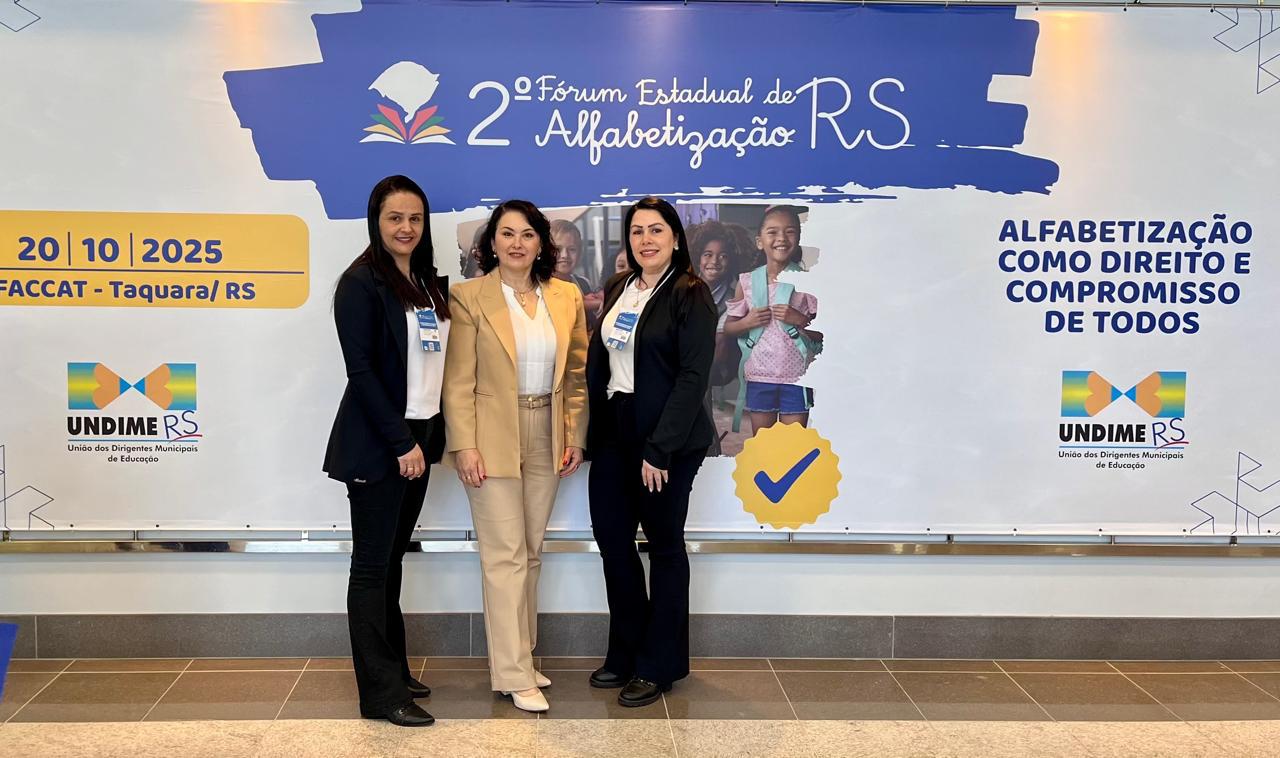 A Secretaria Municipal de Educação de Machadinho marcou presença no 2º Fórum Estadual de Alfabetização do Rio Grande do Sul, realizado nesta segunda-feira, 20 de outubro, nas Faculdades Integradas de Taquara (FACAAT). O município foi representado pela Secretária Municipal de Educação, Leoni Schwaab, e pelas Coordenadoras Pedagógicas, Mônica Pelicer e Zuleica Paixão.