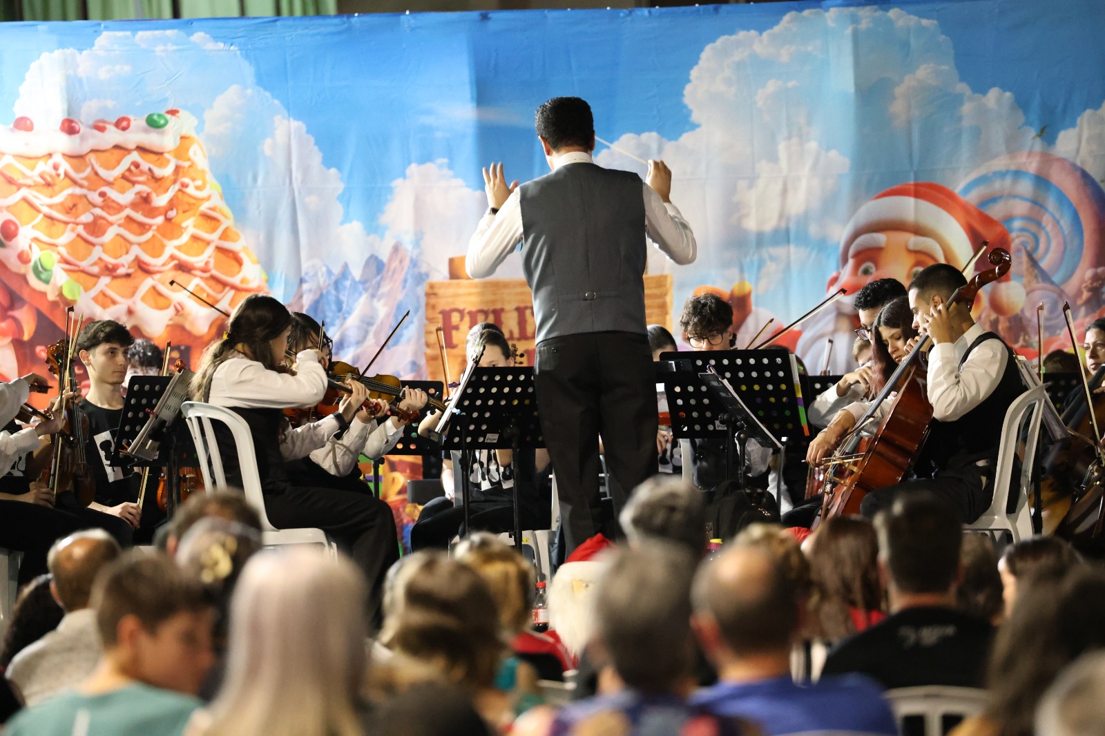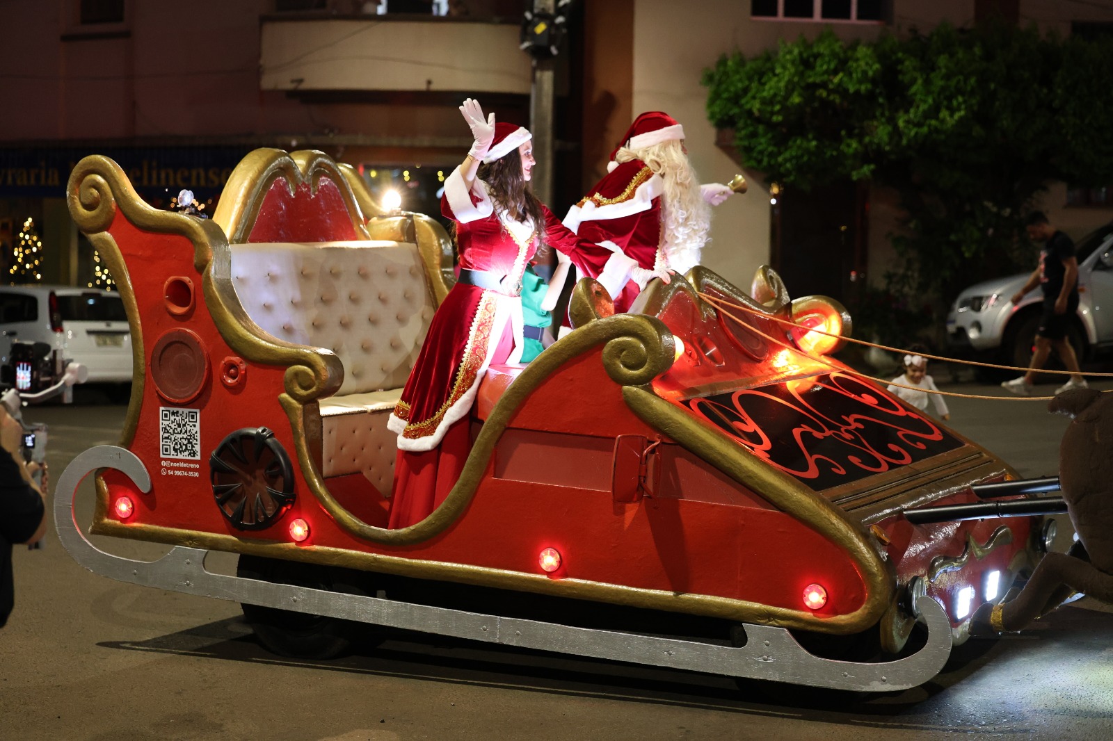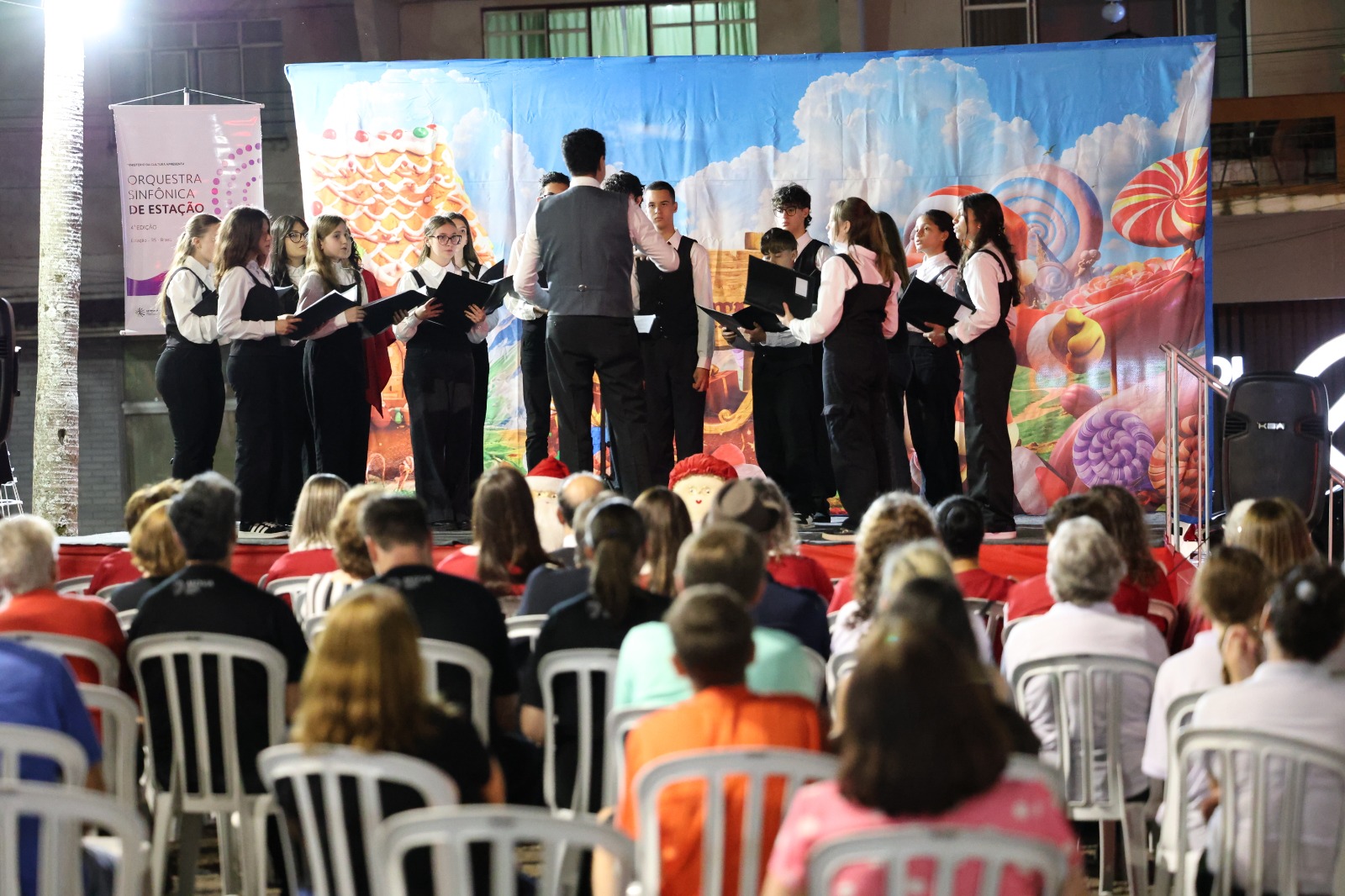 A programação contou com apresentações de corais convidados que emocionaram o público. O ponto alto da noite foi a chegada do Papai Noel, que desembarcou de trenó, arrancando aplausos e encantando as crianças e suas famílias.