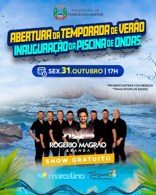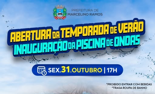 No próximo dia 31 de outubro, Marcelino Ramos abre oficialmente a Temporada de Verão 2025/2026 com uma programação especial que promete marcar a história do turismo local regional. O destaque do evento será a tão aguardada inauguração da Piscina de Ondas, considerada um dos maiores investimentos das Termas de Marcelino Ramos nos últimos anos.