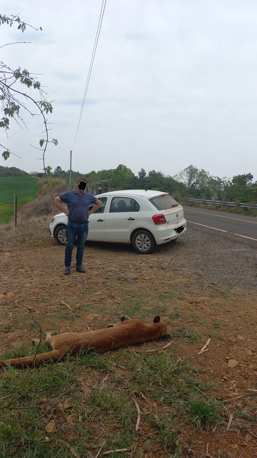 Na tarde desta sexta-feira, 01 de setembro de 2023, a PATRAM (Polícia Ambiental) foi informada e compareceu no local, para dar destinação ao corpo do animal, que provavelmente tenha sido atropelado (acidentalmente), pelas marcas de sangue e sinais encontrados no meio da pista. Trata-se de um macho adulto.