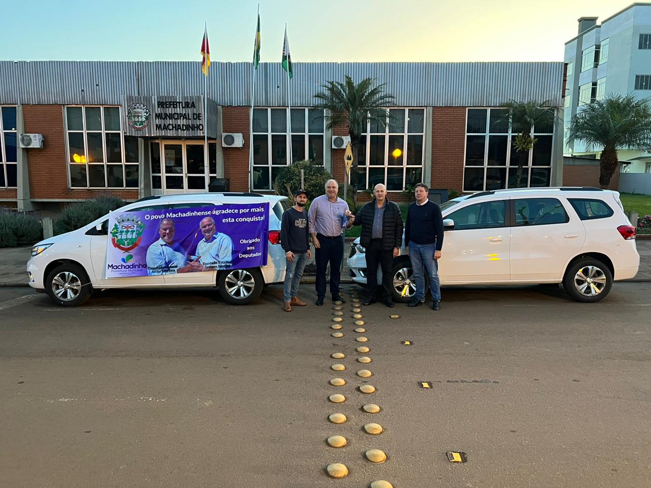 Na última semana o governo municipal de Machadinho recebeu via emenda parlamentar e através de investimentos com recursos próprios, dois veículos zero quilômetros. Os dois carros Chevrolet Spin, compostas por sete lugares, ficaram expostos em frente ao prédio da Prefeitura Municipal e a partir de agora passarão a ser utilizados para os serviços de educação e saúde, no transporte de professores e de usuários, respectivamente.