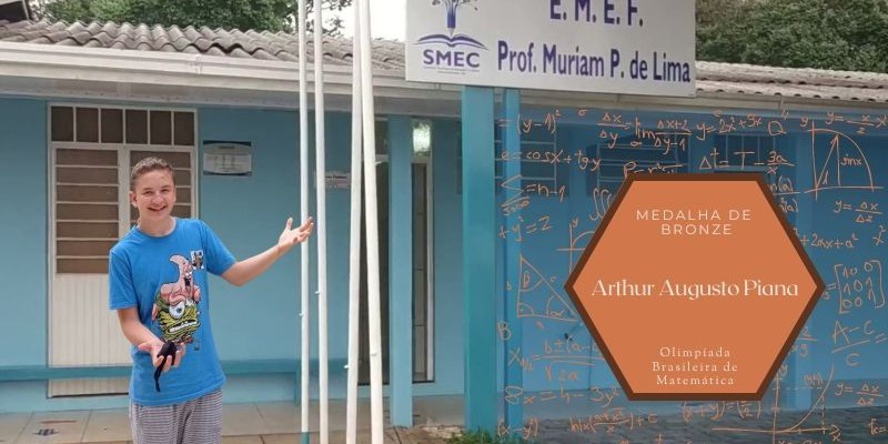 O estudante premiado, Artur Augusto Piana, compartilha sua experiência na competição: “Eu fiquei muito feliz em participar e mais feliz ainda por conquistar a medalha. Gosto muito de matemática e o que me ajudou muito foram os professores e o apoio que eu tive” declarou Artur.