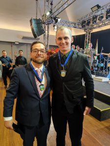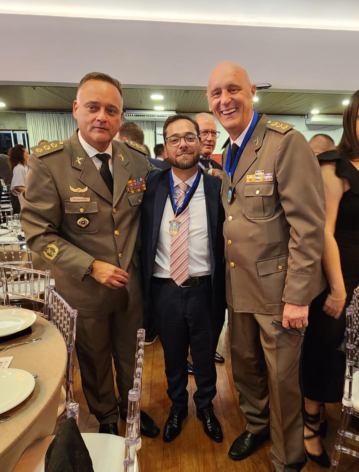 Entre os homenageados esteve o empresário e jornalista Robson Vinicios Duarte Kalb, que foi presidente do CONSEPRO de Machadinho e, por meio de seus veículos de comunicação — Rádio Club FM 96,7, Jornal Folha da Club e o portal da emissora — sempre contribuiu com a segurança pública de Machadinho e dos municípios da região, recebendo a distinção com emoção. As comendas foram entregues aos homenageados pelo comandante-geral da Brigada Militar, coronel Luigi, e pelo comandante do CRPM Norte, coronel Aguiar, reforçando ainda mais a importância e o prestígio da homenagem. “Recebo com alegria e honra esse reconhecimento pela Comenda CRPM Norte. Gratidão à Brigada Militar”, declarou.