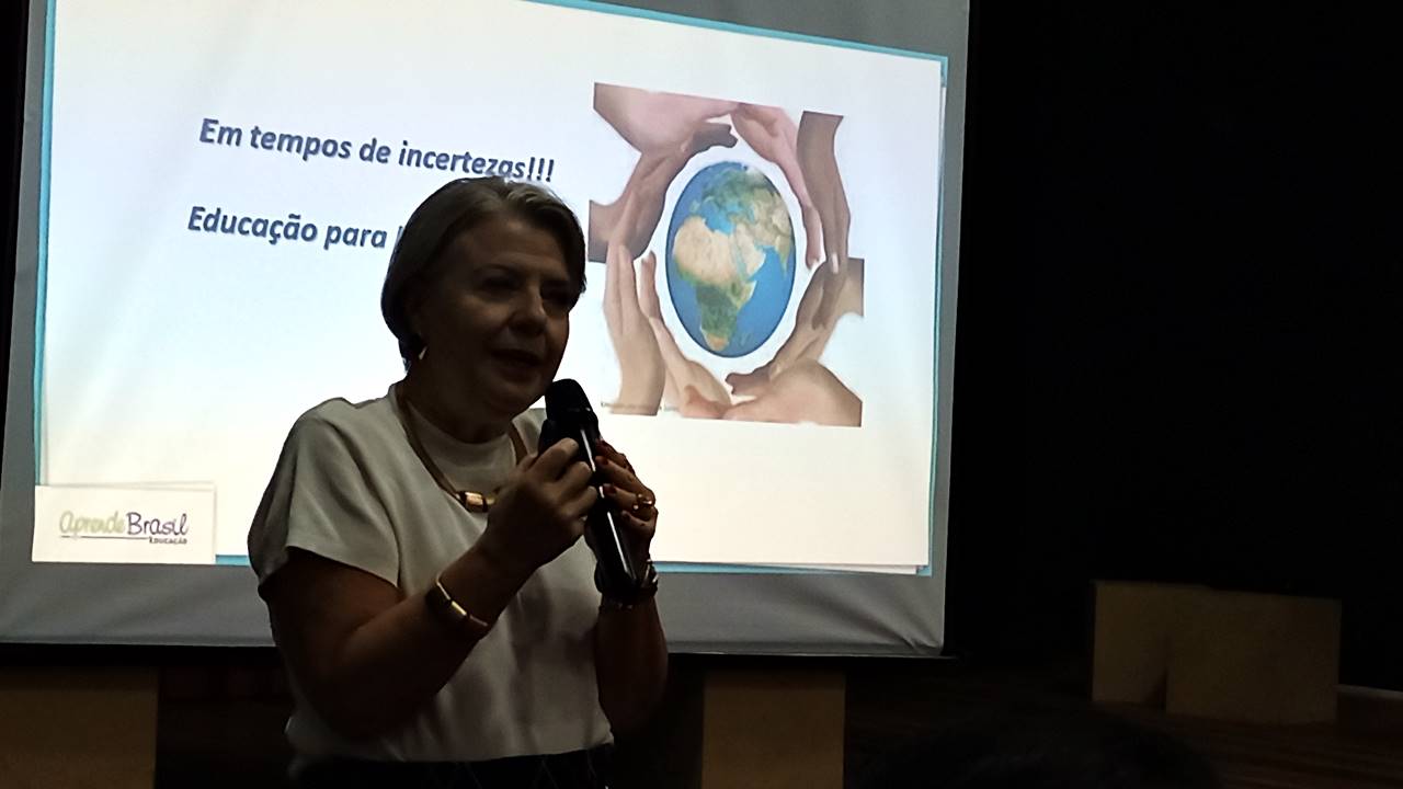 A supervisora pedagógica do sistema de ensino Aprende Brasil da Editora Positivo, professora Vanessa Zanancini, conduziu a apresentação do tema proposto e enfatizou a grande importância da presença da família na vida escolar. “Precisamos estar juntos na caminhada, dialogar e acompanhar o filho na escola. Se estivermos juntos, apoiando nossas crianças e adolescentes, tenho certeza que a vida futura deles como adultos será muito melhor, com mais sabedoria” afirmou Vanessa.
