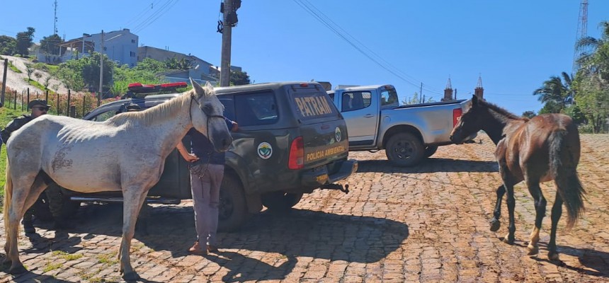 No sábado, 30 de março, uma equipe da PATRAM, do 3º Batalhão da Polícia Ambiental (3ºBABM) sediada em São José do Ouro, deslocou-se para Machadinho em resposta a uma denúncia preocupante: Dois cavalos, soltos pelas ruas e avenidas da cidade, causando transtornos e riscos de acidentes. O Corpo de Bombeiros Voluntários e a Rádio Club FM 96.7, receberam chamadas e avisos, que alertavam sobre “quase acidentes”, envolvendo os animais.