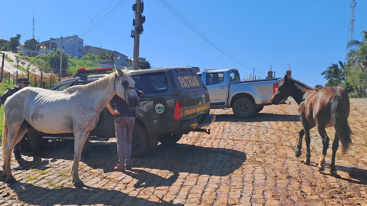 No sábado, 30 de março, uma equipe da PATRAM, do 3º Batalhão da Polícia Ambiental (3ºBABM) sediada em São José do Ouro, deslocou-se para Machadinho em resposta a uma denúncia preocupante: Dois cavalos, soltos pelas ruas e avenidas da cidade, causando transtornos e riscos de acidentes. O Corpo de Bombeiros Voluntários e a Rádio Club FM 96.7, receberam chamadas e avisos, que alertavam sobre “quase acidentes”, envolvendo os animais.
