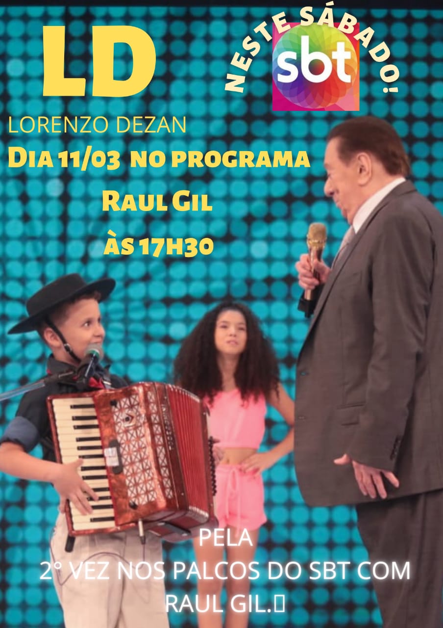 Neste sábado, 11 de março de 2023, a partir das 17h30m, ele novamente estará no palco do Programa Raul Gil, mostrando a cultura gaúcha e o seu talento nato, para todo o Brasil!
