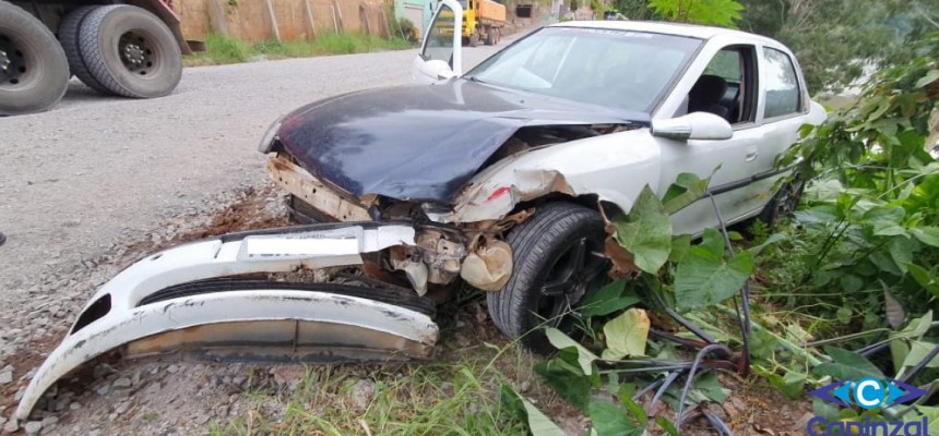 Um veículo GM/Vectra com placas de Capinzal colidiu com um caminhão basculante durante uma tentativa de fuga da Polícia Militar na tarde desta terça-feira (25), quase caindo em um barranco na saída para a comunidade de Vila Anchieta, em Capinzal.