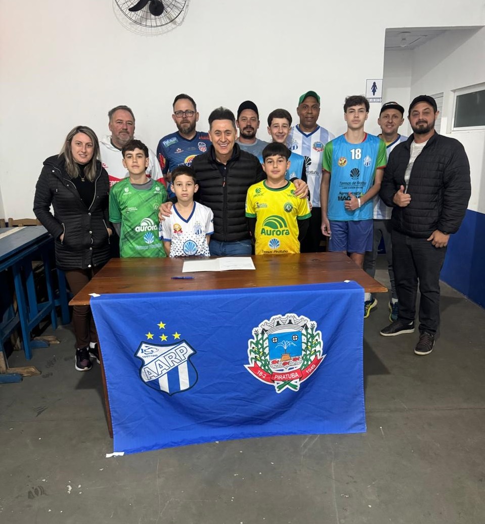 A assinatura ocorreu na sede da AARP e contou com a presença do presidente da entidade, Márcio Halpenthal, do coordenador da escolinha, Nirceu Machado, de pais, alunos e do vereador Leandro Borges.