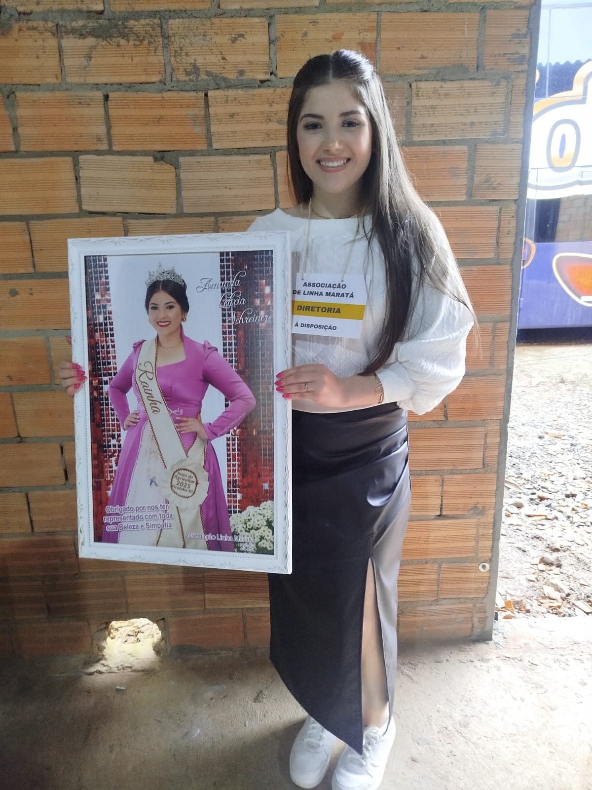 Amanda Letícia recebeu um quadro com sua foto com traje oficial de rainha e uma carta que expressa todo o carinho, admiração e gratidão da comunidade, entregues pelo presidente da comunidade, Tiele Pereira de Lima, e pelas representantes da comunidade.