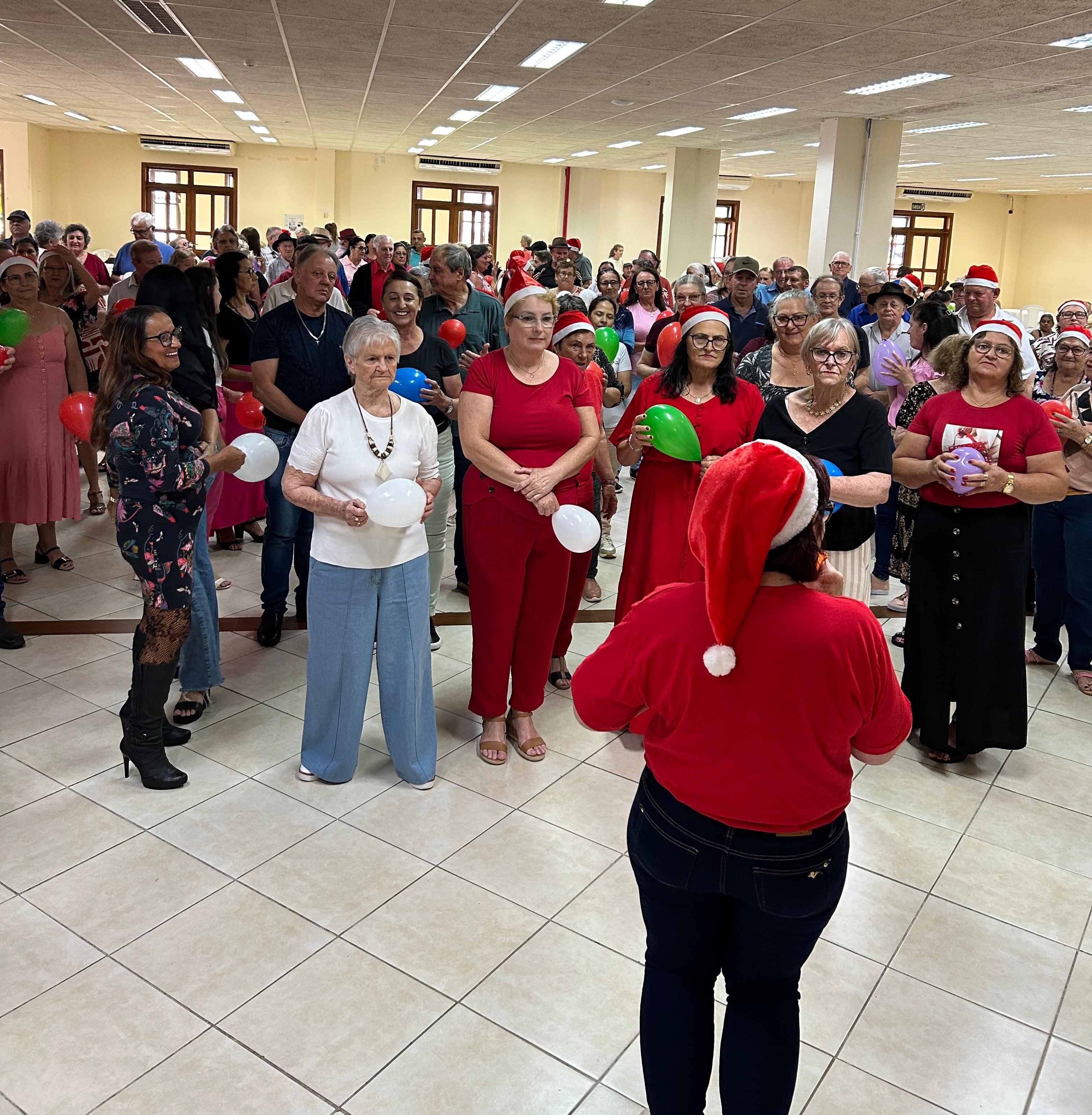 O encontro reuniu cerca de 300 idosos, que participaram de uma dinâmica especial, compartilhando palavras positivas e desejos para o próximo ano. A celebração também contou com a presença do Papai Noel, que distribuiu bombons e camisetas personalizadas, trazendo ainda mais alegria ao momento.