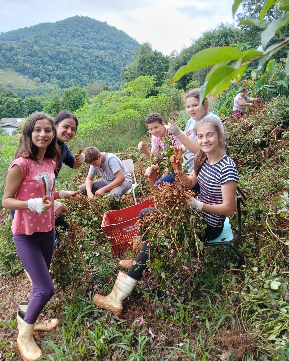 A colheita do amendoim se tornou um momento especial para a comunidade escolar, resgatando práticas tradicionais da agricultura e fortalecendo o vínculo dos estudantes com o campo e a alimentação natural.