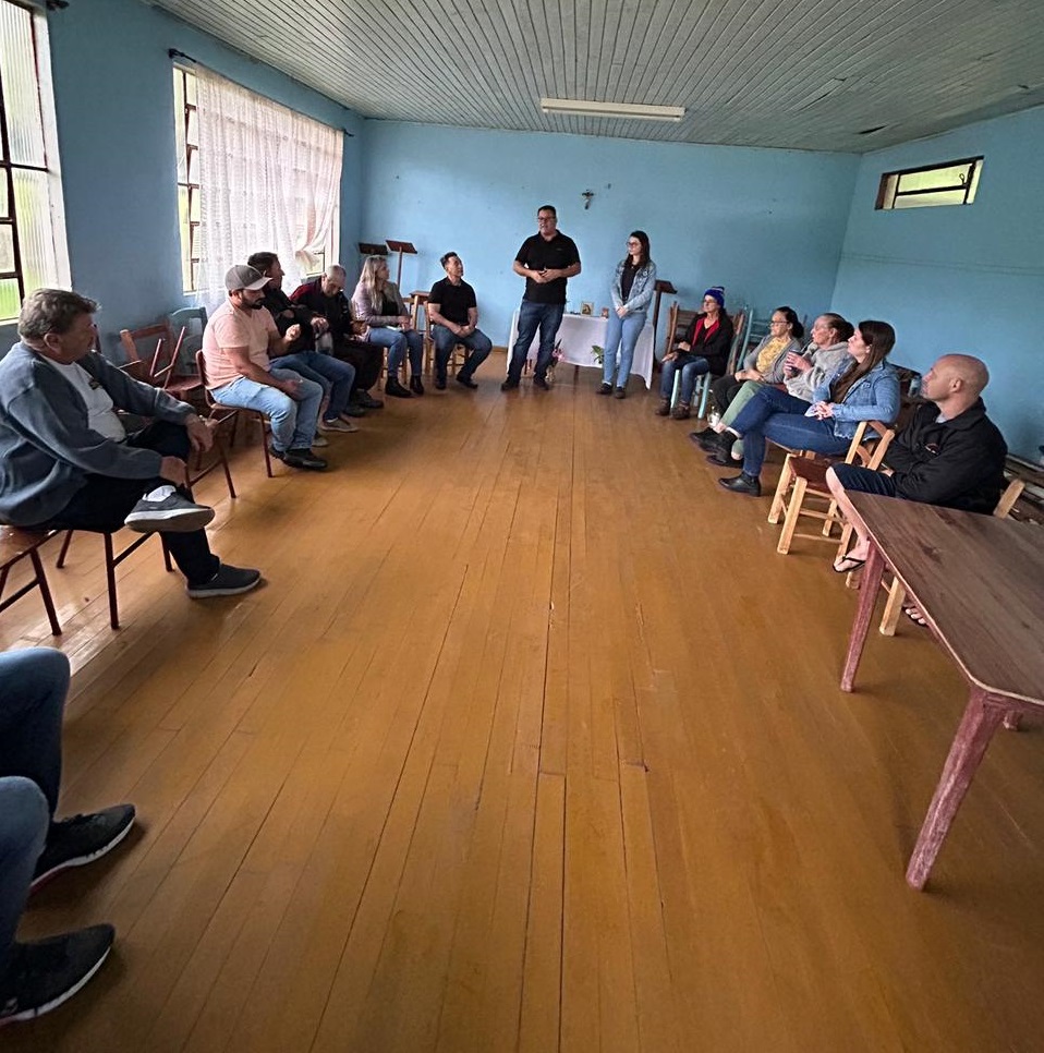 Durante o encontro, foram apresentados detalhes do novo trecho de pavimentação, que vai ligar o centro de Piratuba ao asfalto da Rota das Águas, melhorando o acesso também para quem vem da comunidade de Lageado Mariano.