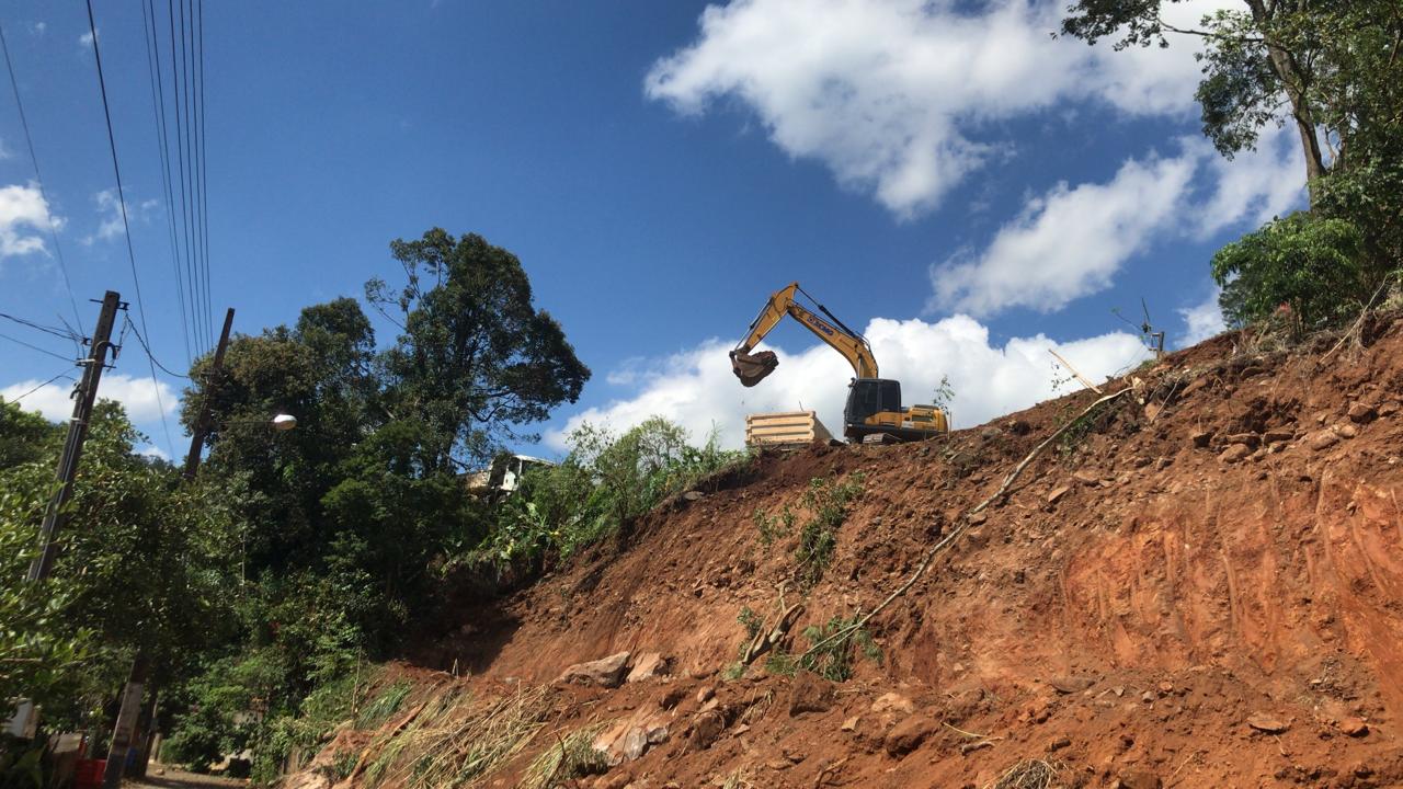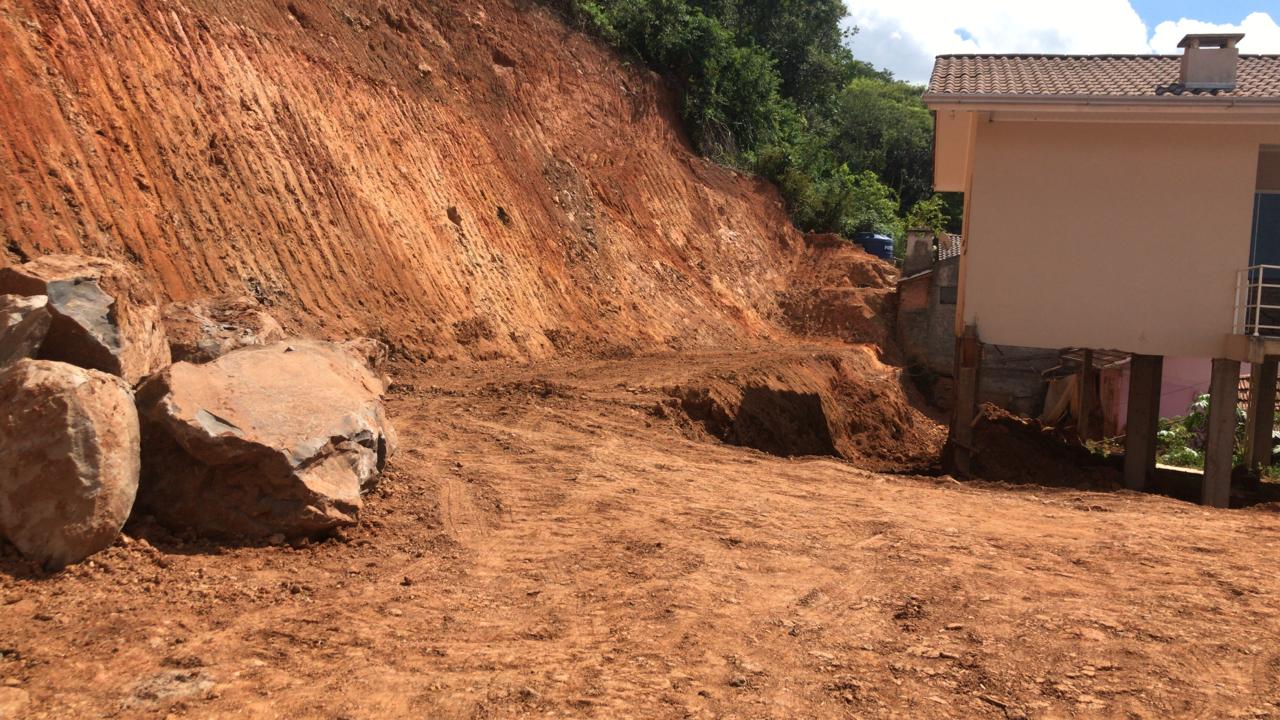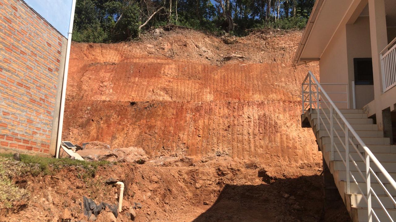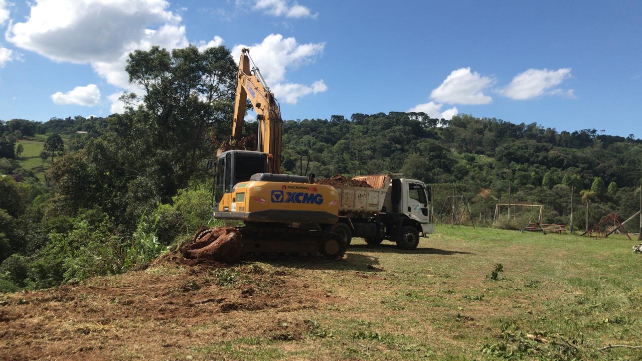 A Secretaria de Obras do Interior está prestando apoio à Secretaria de Obras da cidade na retirada de terra proveniente de um desmoronamento ocorrido na Rua 1° de Maio e no Bairro Verde. Segundo a Defesa Civil, essas áreas apresentam risco para os moradores, tornando a ação emergencial necessária.