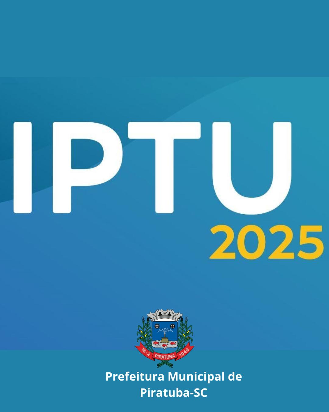 O Setor de Tributação do município de Piratuba informa que o IPTU 2025 está disponível para pagamento. O vencimento em cota única, com 10% de desconto, pode ser pago até o dia 09 de maio. Caso o contribuinte queira optar por pagar em 2 vezes, sem desconto, a 1ª parcela também deve ser paga até 09 de maio e a 2ª parcela, até 29 de agosto.