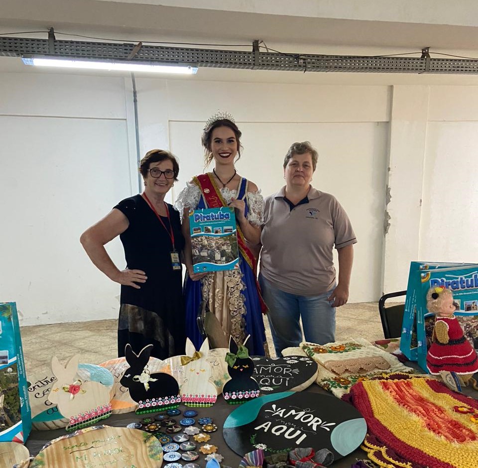 A Fundação de Cultura e Eventos, representada pela Gerente Thais Bortolossi, acompanhou as artesãs de Piratuba que estão expondo seus trabalhos no XII Fórum Catarinense de Cultura no município de Concórdia-SC. Na noite de abertura, a princesa do Kerb Emily Danielli Lago também esteve prestigiando o evento, representando a cultura e as festividades alemãs do nosso município.